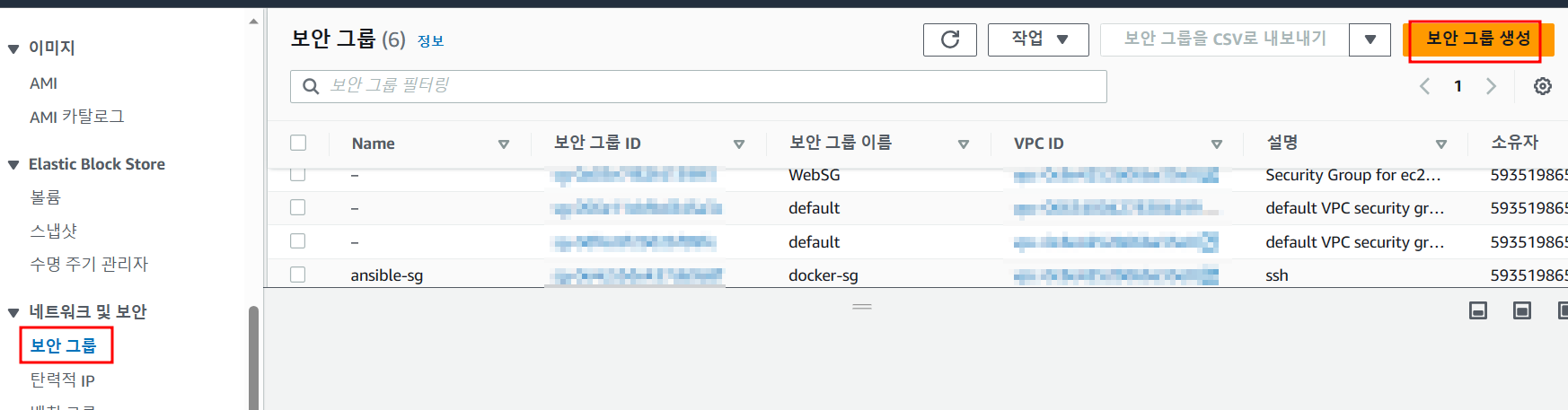 - 보안 그룹 생성 시 설명에는 어떠한 인바운드 규칙을 넣어줬는지 작성하면 확인하기 쉽다